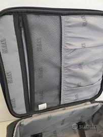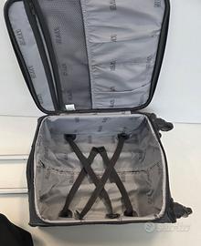 Trolley viaggio da cabina Slam. Ottime condizioni, ampie tasche interne ed esterne. Usato solo un paio di volte. Manico estendibile, ruote. Nessuno strappo o difetto. Piccoli segni di usura ma non rilevanti come in foto. Misure: Altezza 52cm, larghezza 38cm, Profondità 20cm. Euro 15