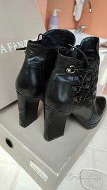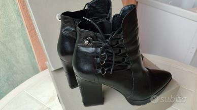 tronchetti cafè noir n.39, vera pelle, tacco comodo e stabile 10 cm, molto raffinati, con laccetti laterali e chiusura zip. Usati ma in ottimo stato, come nuovi, indossati pochissime volte. Pagati 90€.