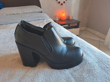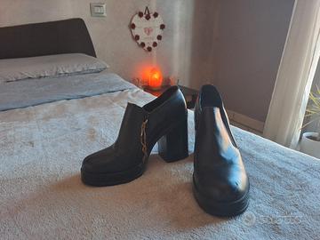 Tronchetti con plateau marca "Fiori&Spine", in pelle vera, utilizzati una volta durante una cena. Suola perfetta. Tacco alto 7cm Plateau alto 2 cm Taglia: 39 Vengo con OMAGGIO