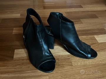 Vendo tronchetti estivi traforati aperti sulla punta e sul tallone, taglia 38, messi poco e perciò in ottimo stato. Si indossano con una zip e il tacco largo è comodo anche per camminare a lungo. Marca Ritmo Shoes.