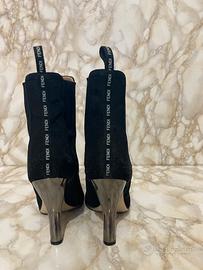 Meraviglioso tronchetto Fendi colibrì nero in tela. Fatto risuolare in punta per proteggerla meglio. Numero 38.5. Perfette condizioni. No dustbag. No scatola.