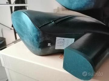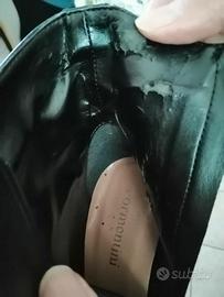 stivaletti in pelle neri con zip laterali e dettaglio borchie sul retro, Formentini made in italy taglia 38 pianta larga e comoda. Nuove, unico difetto si sfoglia la pelle interna, invisibile il difetto da fuori. Tacco 8,50 cm. Si abbinano perfettamente a jeans, pantaloni, gonne e abiti.