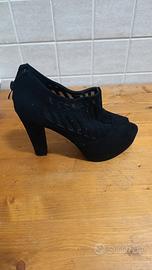 Tronchetti Janessa neri con tacco largo, plateau e