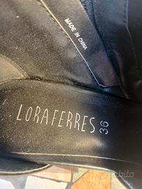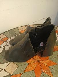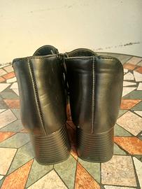 Eleganti tronchetti neri con apertura "peep-toe" davanti e tacco largo comodissimo. Realizzati in similpelle, chiusura con zip laterale. Usati pochissimo, suola praticamente intatta come mostrato in foto.