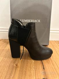 Tronchetti stivaletti con tacco h 10 in pelle nera marca Lumberjack taglia 37