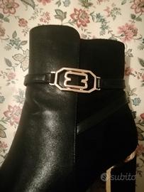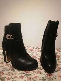 Vendo un paio di tronchetti neri da donna taglia 38 e marca Dame Rose, con fibbia e interno del tacco dorati, il resto dei materiali è in similpelle e tessuto simil-camosciato (ma non camoscio vero). Con un tacco alto 9,5 cm, questi tronchetti slanciano elegantemente la figura, prestandosi efficacemente ad outfit più formali ad un abbigliamento più smart casual. La base ampia e regolare del tacco (4 cm) unita al tronchetto saldo e aderente alla caviglia grazie alla zip interna, garantiscono una camminata sicura e agevole. I tronchetti hanno 2-3 anni, ma sono ancora in ottimo stato come da fotografie, con lievissimi segni di usura poco prima della punta e parti dorate praticamente intatte. Per chi fosse residente a Monza e dintorni, è possibile anche il ritiro al mio domicilio. Per ulteriori informazioni o chiarimenti non esitate a contattarmi!