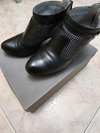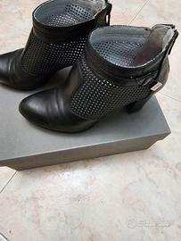 Eleganti tronchetti in pelle traforati., colore nero, misura 36, tacco cm.6.5, plateau 1 cm, per essere più comode ma NERO GIARDINI 😊 non smentisce mai, logo NG in metallo laterale.