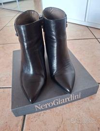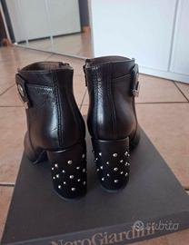 Tronchetti Nero Giardini modello Pandora in vera pelle nera, tacco alto 10 cm con piccole borchie silver, NUMERO 36, condizioni come nuovo (vedasi suola melle foto).