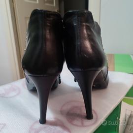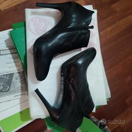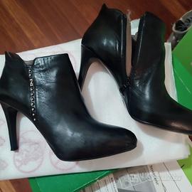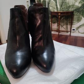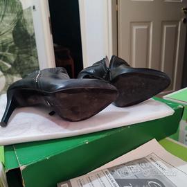 tronchetti nero giardini in pelle nera, usati tre volte, in ottime condizioni, uno stivaletto presenta una piccolissima abrasione sulla parte posteriore destra, già ripristinata con crema per scarpe