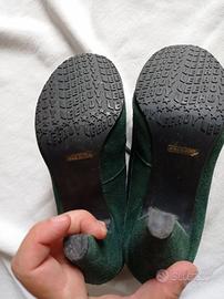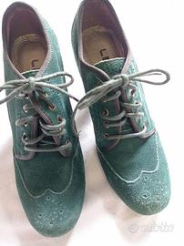 Scarpe scamosciate con tacco e lacci Marca Leeroy numero 35 Vintage color verde scuro Ritiro a mano a Modena spedizione tutto subito