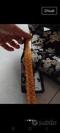 in tessuto tipo damascato sui toni del nero argento e oro cerniera interna leggermente imbotti tacco comodo come da foto ed essendo in tessuto anche se usati pochissimo il tessuto si e un po sfskdayo sulla punta n 37