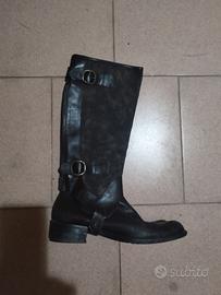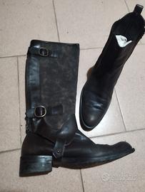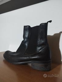 tronchetti in vera pelle/cuoio con galoche che si trasformano all'occorrenza in stivali. colore marrone