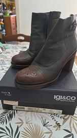 Scarpe tronchetto con tacco donna pelle marrone blu con zip n°39 Igi&Co