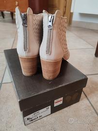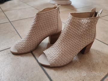 Tronchetto donna estivo, con tacco largo e zip, open toe. Colore beige. Utilizzato un paio di volte per cerimonie.