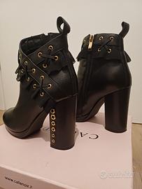 Tronchetto cafenoir n. 37 con borchie e rouges. Tacco 10 cm. Pianta morbida con inserto in memory. Usato una sola volta come si può notare dalla suola.
