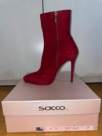 Vendo comodissimo paio di tronchetti in camoscio rosso con tacco a spillo e plateau.