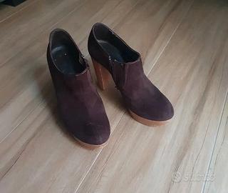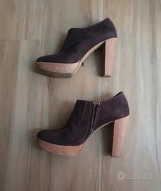 tronchetto con tacco altro e plateau. in camoscio marrone