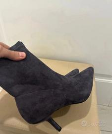 Nuovo mai indossato con scatola Tg 38 Lunghezza suola interna 25 cm Tacco altezza 7 cm Stivaletti donna grigio effetto camoscio Veste regolare