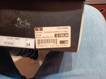 Splendidi stivaletti di camoscio con frange e zeppa Gisel Moiré Paris di colore verde N. 39, usati 2/3 volte, praticamente nuovi, prezzo non trattabile