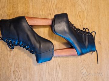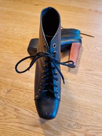 Tronchetti modello Lita in pelle nera. Suola in gomma. Tacco in legno cm.12