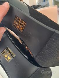 Tronchetto Laura Biagiotti, n.37, usate solo 1 volta. praticamente sono nuove. Perfette sia di tacco che la punta. la.parte di vernice nera è intatta e anche le parti dorate sono intatte. Ritiro a Piano Lago, o da concordare