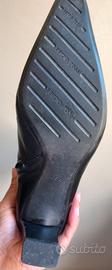 tronchetto Sergio Rossi in pelle nero, usato in ottime condizioni, suola originale, tacchi rifatti di recente. nessun segno importante d'usura.
