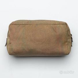 Trousse Etro Milano -Made in Italy -multicolore -in tessuto con iconica fantasia Etro -apertura con cerniera -logo frontale -logo interno in pelle -misure: 20 cm x 10 cm x 8 cm in buone condizioni (vedi foto) sono presenti segni di usura e internamente alcune macchie (vedi foto)