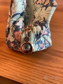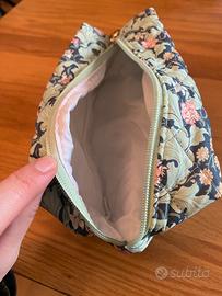 Beauty-case pochette trapuntato, fantasia floreale, nuovo mai usato, colori sul verde e rosa