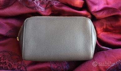 Portacosmetici, portachiavi, trousse in vera pelle, effetto saffiano color rosso ciliegia, grigio asfalto e rosa di Furla.