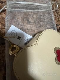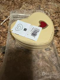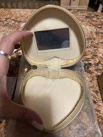 Nuovissima trousse o portagioielli a forma di cuore nuovissima con sacchetto e cartellino specchietto interno con cerniera