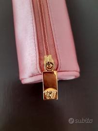 Trousse marca Versace da make up. Tessuto rosa, logo sull’impugnatura della cerniera e all’interno. Interno rosa. Misure: cm. 14 x 6 x 6. Le foto fanno parte integrante della descrizione