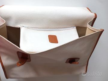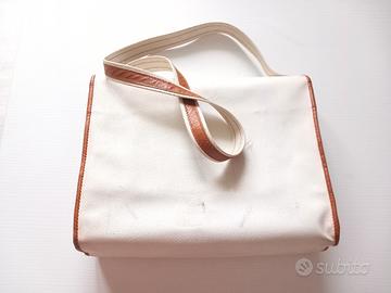 Borsa a spalla/tracolla Vintage dei anni '80. Colore bianco/panna con rifiniture in cuoio. Misure: L-32cm H-26cm P-9cm Consegna a mano se in zona!
