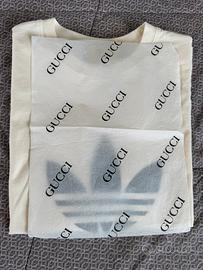 Tshirt gucci x Adidas speculum majus ivory M Vendo causa inutilizzo Nuovo con cartellino Colore : avorio , nero Taglia : M