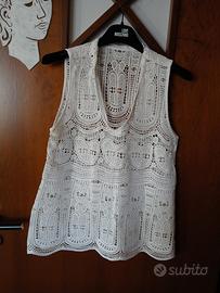 tshirt smanicata bianca seventy TG 44 come nuova pizzo di cotone svendo pet taglia errata per me