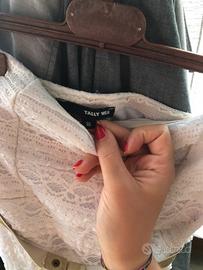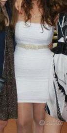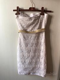 Tubino bianco con pizzo Tally WEiJL, con cinturina dorata, fodera interna e leggera imbottitura sul seno. Indossato una volta. Taglia 36, XXS