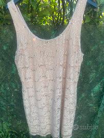 Tubino donna a spalla laga, lungo fino al ginocchio Tg 48 Colore rosa cipria con paillettes