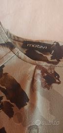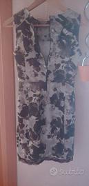 vendo tubino donna a giromanica verde militare con fiorellini panna , con cerniera dietro e laterale e con bordo rifinito di merletto nero, mai indossato vendo xche' stretto, marca motivi TG S