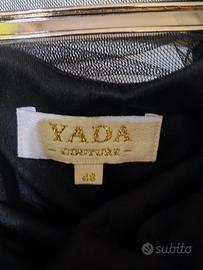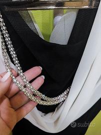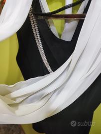 tubino elegante bianco e nero con catena di brillantini sulla parte posteriore e stola bianca coordinata; marca "Yada Couture"; taglia: 48. Indossato una sola volta.