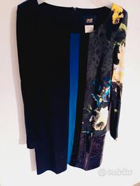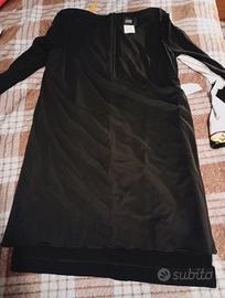 in jersey invernale, vestibilità aderente sui fianchi, zip posteriore, dettagli in velluto e similpelle lucida, misure in foto, indossato una sola volta
