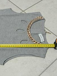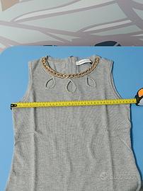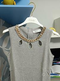 Elegante abito in maglia, modello tubino, colore grigio mélange con particolari in oro sia sul seno che al collo. Ottima vestibilità poiché delicatamente aderente e morbido sulla pelle. Indossato solo una volta, praticamente nuovo. Chiusura con cerniera dietro al collo. Taglia unica, ma veste perfettamente una S. Date un'occhiata ai miei annunci: se vi piace più di un articolo chiedetemi di comporre un set e potrete così risparmiare sulle spese di spedizione!