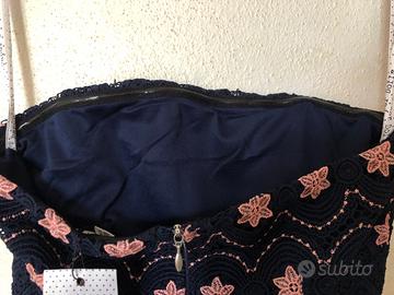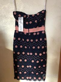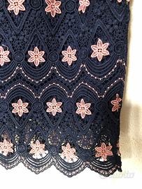 Tubino con fantasia rosa e blu scuro in ricamo.