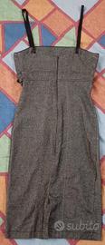 Tubino in Jeans "Rinascimento" con inserto di perle nere in plastica nella parte alta frontale, spacco posteriore centrale nella zona inferiore, cerniera posteriore funzionante con tirante sul suo cursore e spalline regolabili