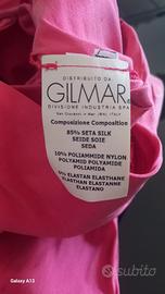 Elegante tubino longuette monospalla da cerimonia, in seta lucida fucsia. Lampo laterale a scomparsa. Frankie Morello Milano. Taglia S. Nuovo. Indossato una sola volta.