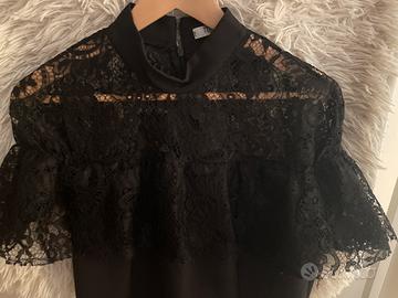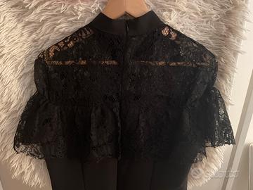 La manica è corta con sbuffo cerniera sul didietro taglia unica usata tre volte lunghezza totale dell’abito dal collo è di 90 cm sotto il seno misura 40 cm si consegno, lavato e stirato