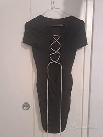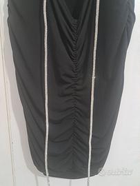 Tubino nero Terranova. Scoperto nella schiena con lavorazione in cordoncino con strass; arricciatura sul fondoschiena. Usato solo in un'occasione, praticamente nuovo.