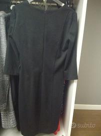 Tubino abito portafoglio vestito nero rinascimento taglia L con rouches volant su un lato, manica a tre quarti con cerniera nascosta dietro la schiena e lunghezza dell abito al di sopra del ginocchio, scollo a barca. Elegante ed intramontabile per un occasione formale, cerimonie o anche per una normale uscita. Mai usato, ma solo tolto il cartellino e lavato.in ottime condizioni. Pagato 129.90 euro. Realizzato in un tessuto che unisce struttura e morbidezza per una vestibilità impeccabile. Le linee pulite e la silhouette aderente valorizzano la figura, rendendo il capo ideale per occasioni formali o serali.