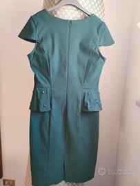 Tubino verde con borchie su scollo e su volant laterali elasticizzato. Taglia XXL. Made in Italy.