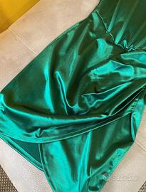 Indossato solo una sera ad un compleanno, in inverno. In ottime condizioni, color verde stile metallico. Attillato, taglia unica, parte superiore rigida. Spalline larghe, da indossare sia sopra le spalle che abbassate. Materiale 95% poliestere e 5% elasthane-elastico (etichetta visibile in foto)