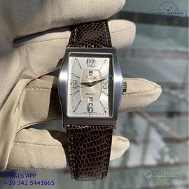 Tudor Archeo 30110 con data acciaio, anno di produzione 2006 circa, vetro zaffiro curvo antiriflesso, quadrante colore argento con data a ore 06:00 e indici arabi, movimento meccanico a carica automatica, cinturino in pelle di lucertola colore marrone scuro con chiusura deployante acciaio originale Tudor.