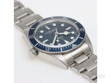 Clover Gioielli pone in vendita Tudor Black Bay 58 Ref. 79030B realizzato in acciaio, Quadrante blu, Lunetta in acciaio con inserto in alluminio di colore blu, Cassa di diametro 39mm. Corona di carica a vite. Bracciale in acciaio con chiusura deployanté. Orologio in condizioni eccellenti. Garanzia datata 07/2021.